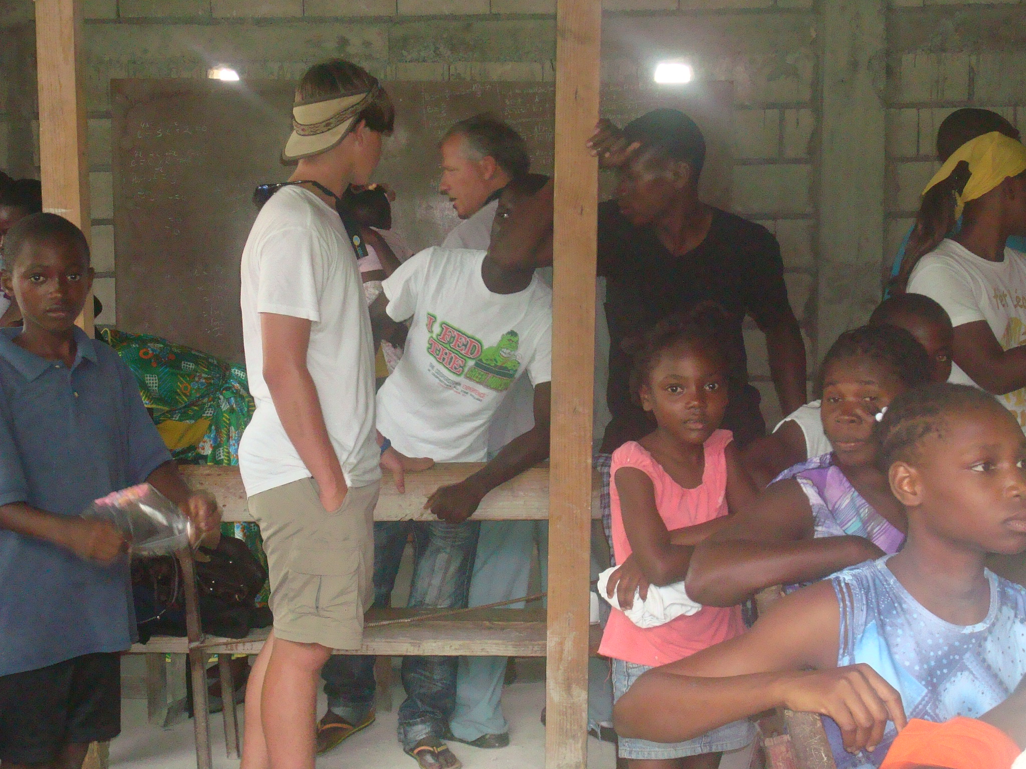 Jacob visiting with some of the villagers in Ca-Ira while waiting for clinic