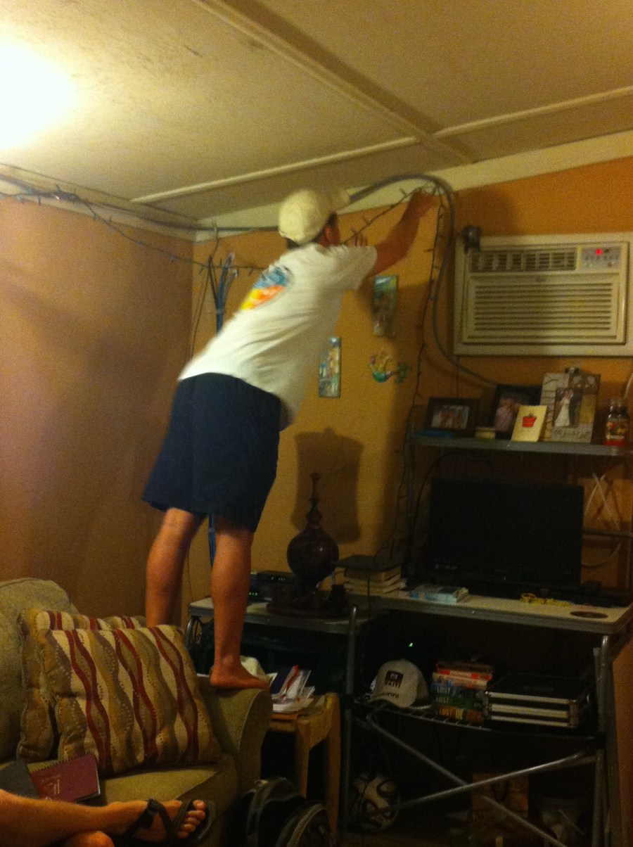 Jacob still hanging lights!