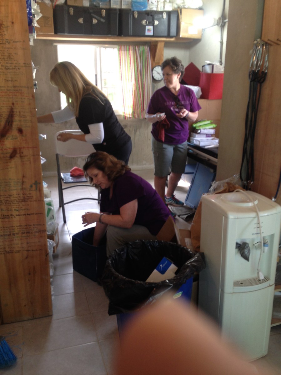 Kaye, Carisa, & Renee helping Tony clean the clinic